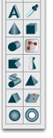 立方体、球体、円錐、三角錐、多角柱、不規則多角形、円柱、トーラス、旋盤、パイプなど、オブジェクトを作成する10種類のツールが備えられています。