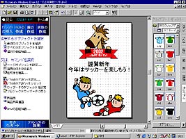 プロジェクトウィザードとは、作りたいものを選ぶだけで、どう作業すればいいのかを順番に教えてくれる非常に頼もしい機能です。たとえば、パーティへの招待状を作りたい場合、グリーティングカード→招待→パーティと選んでいきます。そして指示された通りにイラストやテキストなどを入れていけば、表紙には楽しいグラフィック、内側には案内図を載せた、4つ折りの招待状の出来上がりです。もちろん、グラフィックのサイズや色、場所の変更などは自由にでき、テキストに淡い輪郭を付けておしゃれに仕上げるなど、様々な工夫を施せます。