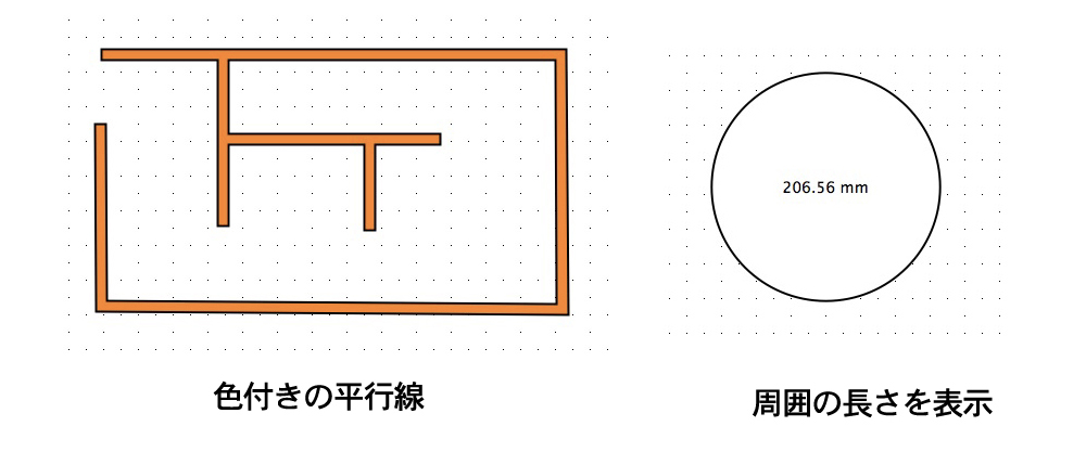 図形の周囲の長さを自動的に表示でます。 |