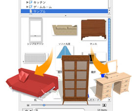 使い方はいたって簡単。ライブラリパレットよりお好みのオブジェクトを作図画面にドラッグ&ドロップするだけです。