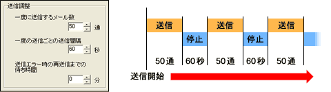 そこでメールマジックライトでは、一度に送信できる通数の設定と、その送信間隔を設定できる機能が搭載されています。
