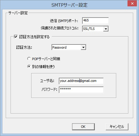 デーSMTPサーバーの細かい設定ができます。SMTP認証(SMTP Auth)の「パスワード」と「Cram-Md5」の認証形式に対応しています。SSL/TSLの接続プロトコルも利用できます。